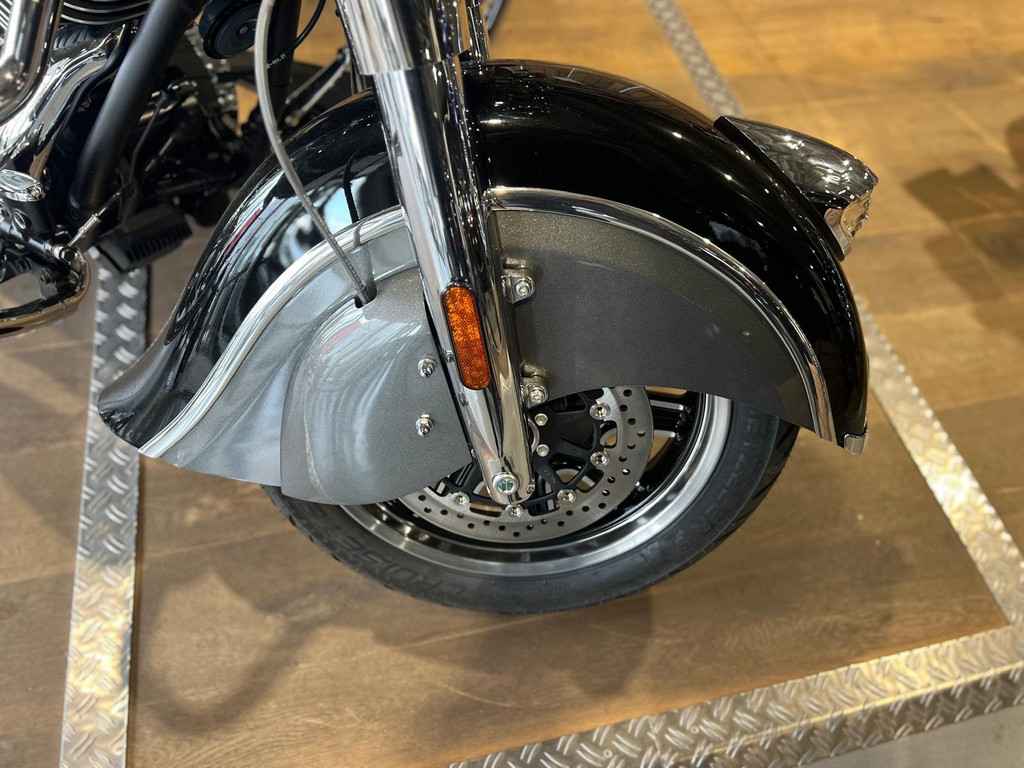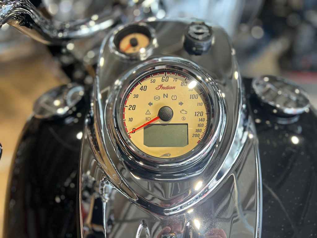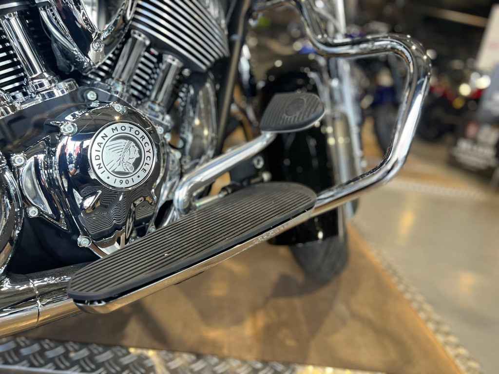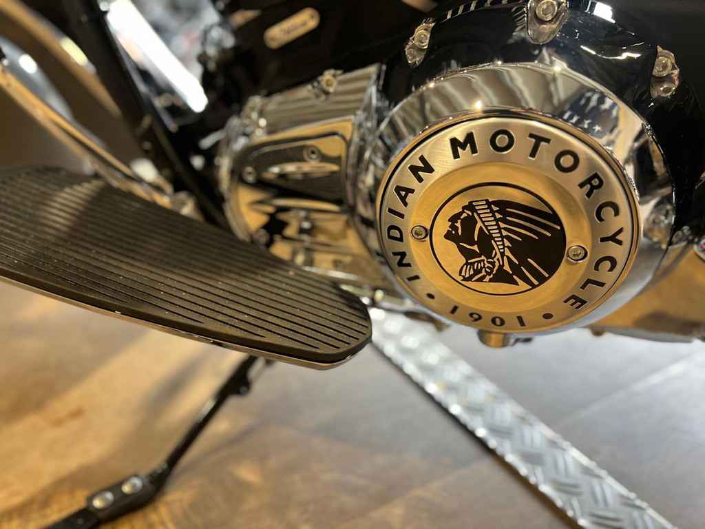 Snel ontgrendelbaar windscherm, zadel in vinyl, op afstand afsluitbare, harde zadeltassen, highway bars, bandenspanningscontrole, lichtstang, ABS, snelheidsregelaar, sleutelloos starten, Indian®-opschrift op de tank