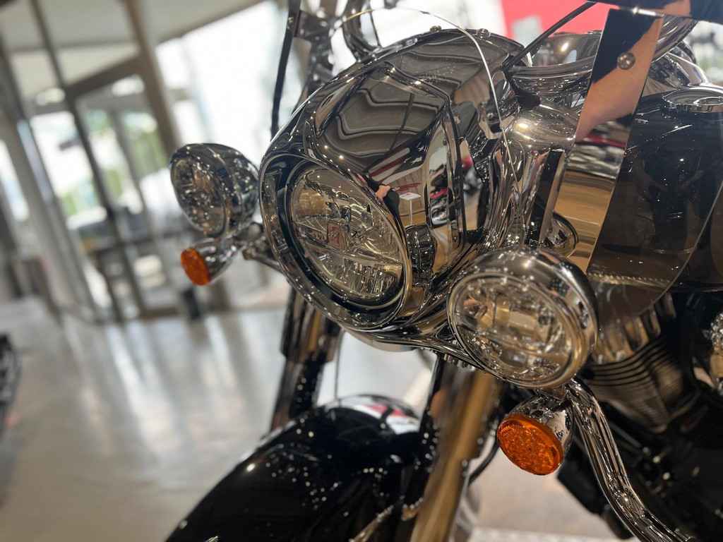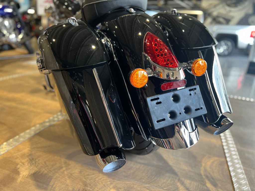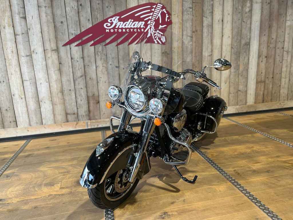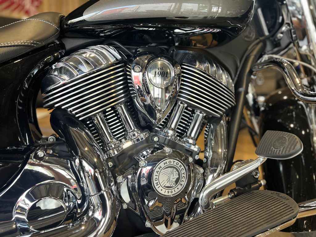 Snel ontgrendelbaar windscherm, zadel in vinyl, op afstand afsluitbare, harde zadeltassen, highway bars, bandenspanningscontrole, lichtstang, ABS, snelheidsregelaar, sleutelloos starten, Indian®-opschrift op de tank