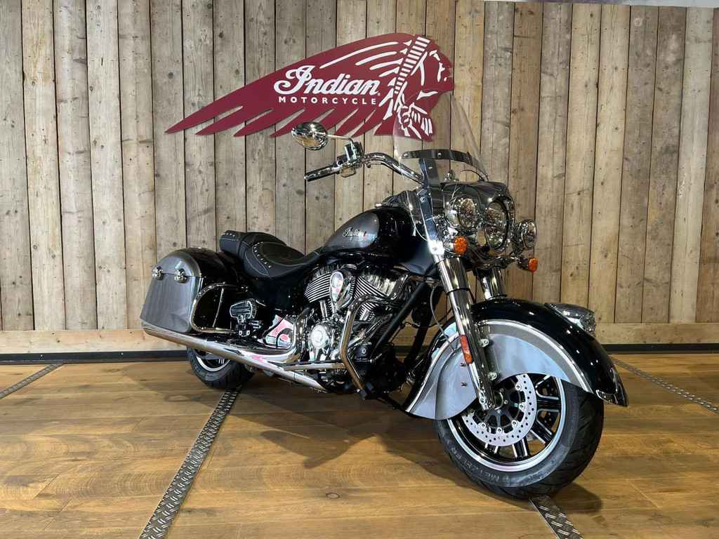 Indian Springfield motorfiets. Ideaal voor twee personen. Deze motorfiets heeft een premium lederen dubbelzits zadel, sleutelloos starten en een geweldig chrome uitvoering.