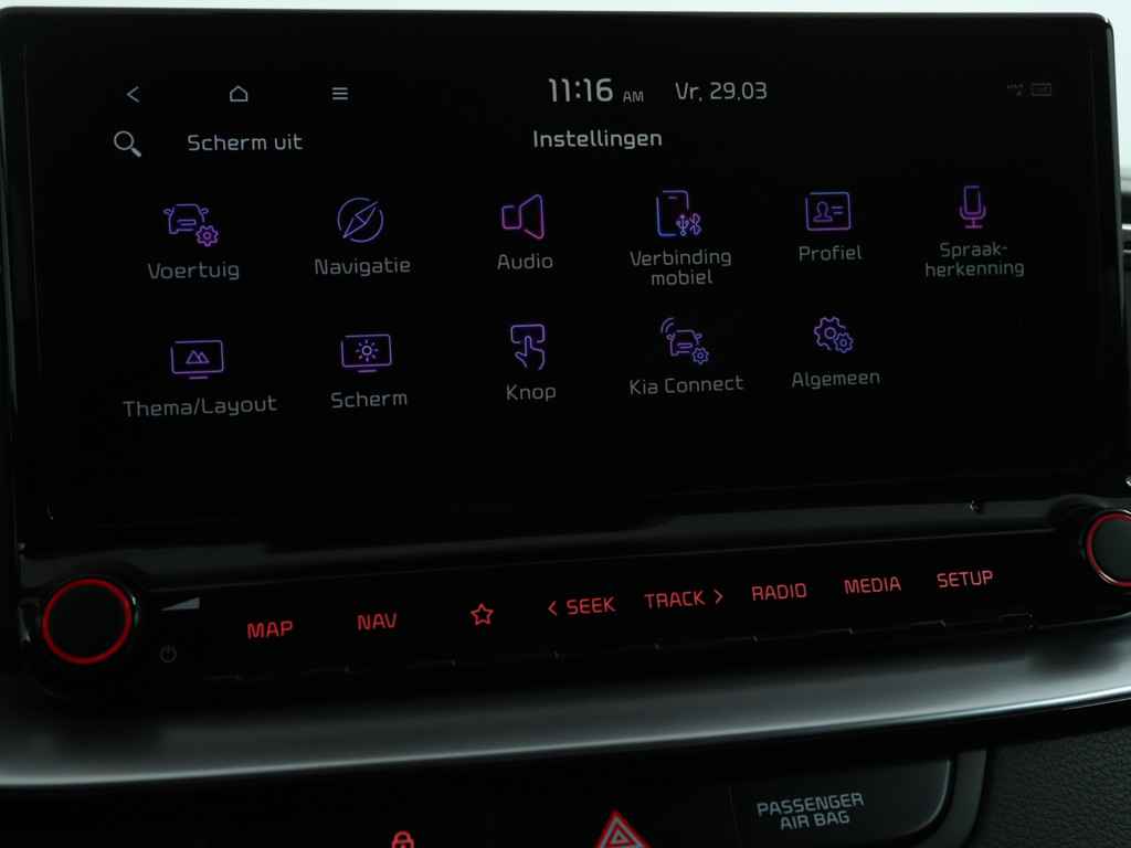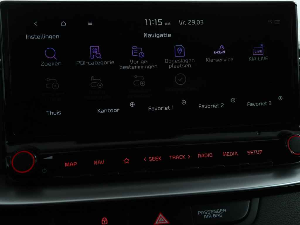 In deze auto zijn verschillende technologieën aanwezig die voor u het verkeer en de omgeving in de gaten houden en die desnoods ook kunnen remmen of bijsturen. Belangrijk voor uw veiligheid en die van uw passagiers is de verkeersbord-detectie in deze auto. Het Lane-keeping systeem doet precies wat nodig is: waarschuwen en corrigeren bij onbedoelde overschrijding van de rijstrooklijnen. Veel aanrijdingen bestaan uit kop-staartbotsingen. De forward collision warning reduceert dat risico aanzienlijk. Bovenop deze veiligheidsfeatures heeft deze Kia bovendien hill hold functie, vermoeidheidsherkenning, autonoom remsysteem en bandenspanningcontrolesysteem.