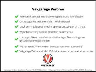 Hartelijk dank voor uw interesse in deze kwaliteitsoccasion, erg leuk dat u deze auto bij ons heeft gevonden! Heeft u vragen over deze auto of de beschikbaarheid? Neem gerust contact op met onze verkopers: Tobias, Mark of Ton. Zij zijn te bereiken op 030-6868277 of via whats-app op het nummer 030-6868276. Deze auto bevindt zich op één van onze twee locaties, wij informeren u vooraf graag waar u deze auto kan bekijken. Het kopen van deze auto is een grote uitgave, wij begrijpen dat u zekerheid wilt voor een goede prijs. De getoonde verkoopprijs is inclusief minimaal 9 maanden APK keuring, aflevercheck van alle vloeistoffen + bandenspanning en verlichting, minimaal een kwart tankinhoud brandstof, de RDW tenaamstelling en de (indien van toepassing) vrijwaring van uw inruilauto. Kijk voor ons optionele afleverpakket naar de betreffende foto in de fotogalerij. Waarom kiezen voor deze kwaliteitsoccasion: - Het is een origineel Nederlandse auto. - Deze auto hebben wij van de vorige eigenaar ingeruild. - De kilometerstand wordt 100% gegarandeerd door de NAP pas die wij bij de auto leveren. - Dit exemplaar is als Acenta 24 kWh uitvoering compleet uitgerust, zie de specificatielijst voor alle opties. Heeft u vragen over de uitrusting van deze auto? Neem gerust contact met ons op. - Navigatie zit op deze auto. - De volledige autodocumentatie is aanwezig inclusief de handleiding, het onderhoudsboekje en twee autosleutels. - Het is een zowel van binnen als van buiten een zeer nette auto en rookvrij. - U kunt profiteren van diverse verzekering-, financiering- en (private) leasemogelijkheden. Vakgarage Verbree; sinds 1957 het adres voor uw kwaliteitsoccasion met de zekerheid van het BOVAG keurmerk!