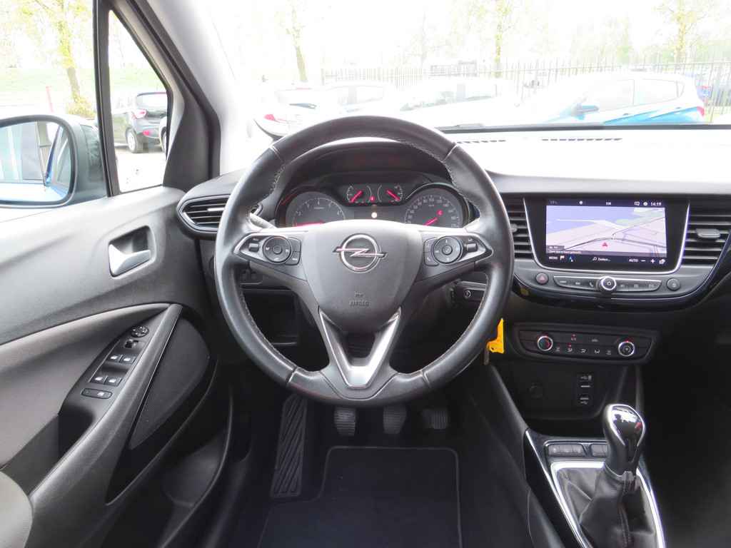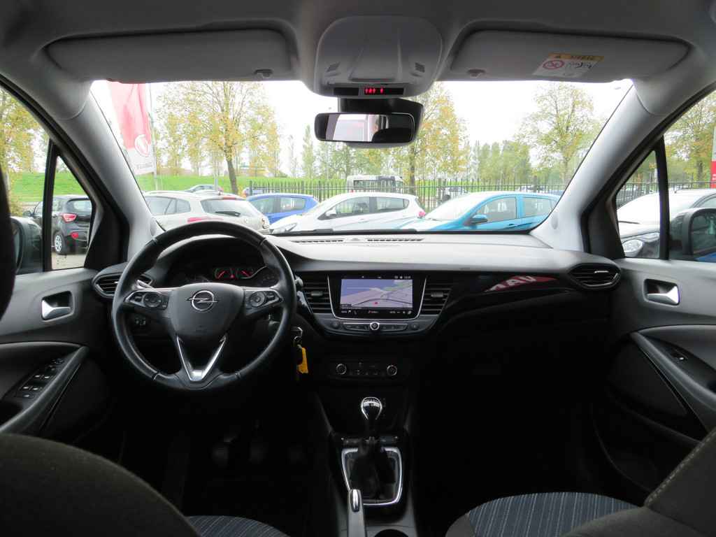 Met de knoppen op het stuur regelt u het audiosysteem en het full map navigatiesysteem, terwijl u uw blik op de weg gericht houdt. De audio-installatie biedt daarbij glasheldere ontvangst dankzij DAB-ontvangst. Boem is ho? Niet bij deze Opel Crossland X. De piepjes van de parkeersensoren waarschuwen u op tijd voor obstakels. Kleine ritjes, grote reizen - altijd een relaxte aankomst dankzij de cruise control. In een auto als deze mag u ook airconditioning verwachten. Ook buitentemperatuurmeter, lederen stuur, isofix-aansluiting, usb-aansluiting, centrale deurvergrendeling met afstandsbediening en toerenteller horen tot de voorzieningen op deze auto.