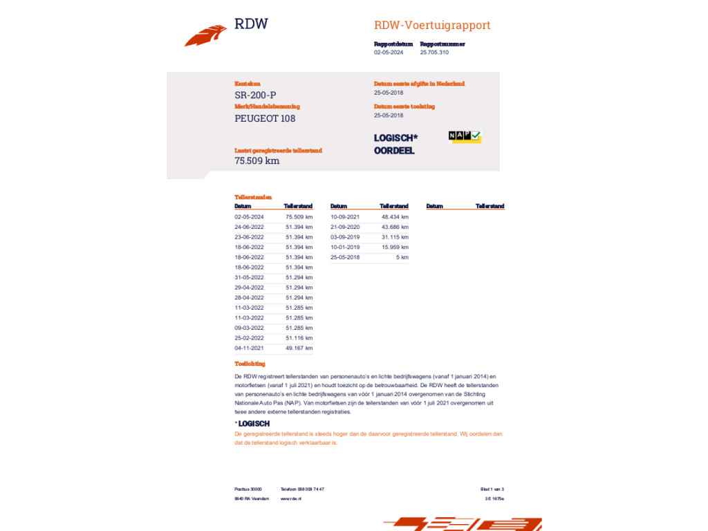 Bij de aanschaf van de auto dient u de auto zelf te controleren op alle accessoires of het ontbreken hiervan zelfde geldt ook voor eventuele zichtbare schades op de auto.