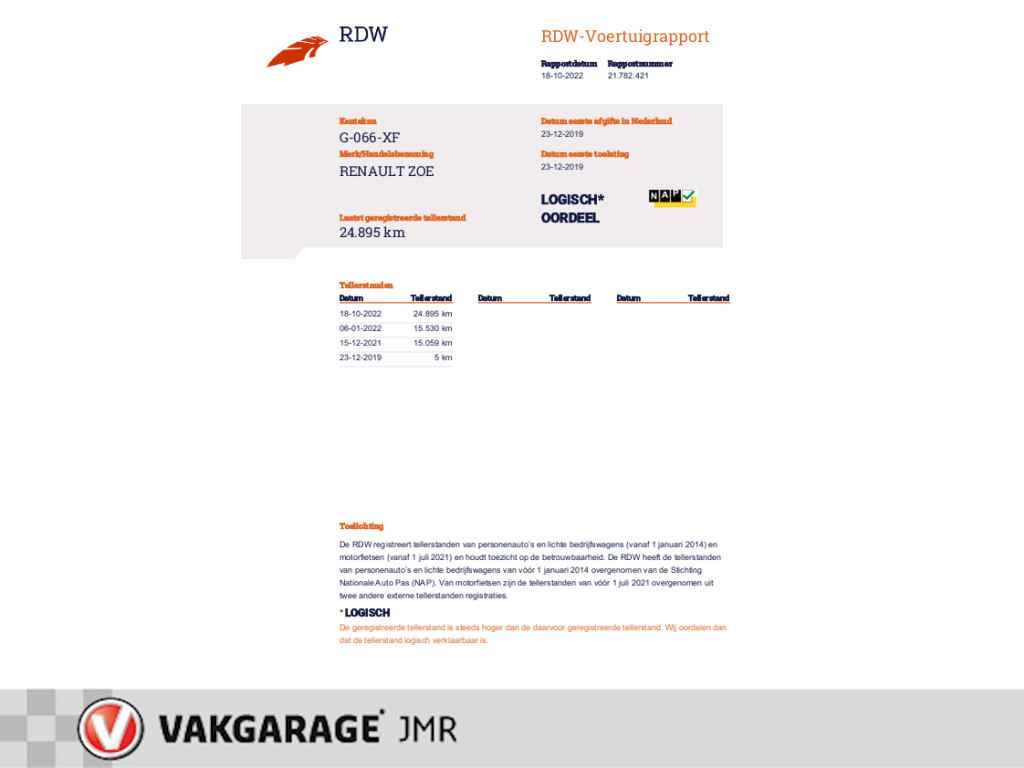 Deze Renault ZOE kan worden afgeleverd met Vakgarant garantie. Vraag naar de mogelijkheden.