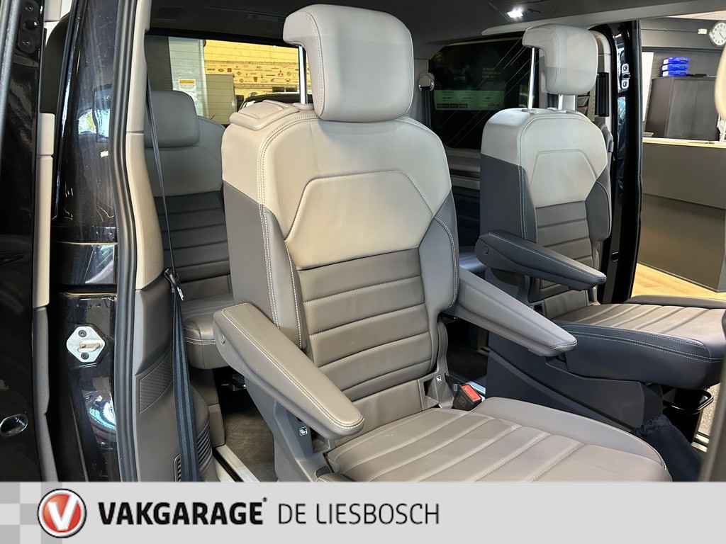 Hij blikt zelfverzekerd de wereld in, deze Volkswagen. En waarom zou hij ook niet? Want deze MULTIVAN is sterk en robuust, hij biedt veiligheid en rijcomfort in overvloed en hij blinkt bovendien uit door zijn uitstekende rijeigenschappen. Volkswagen-rijders weten het: een VW is gebouwd voor duurzaamheid en deze MULTIVAN ziet er dan ook uit als nieuw. De aandrijving van deze Volkswagen komt voor rekening van een viercilinder motor en een automatische transmissie. Wat trekt u meer aan: een lederen interieur of een elektrisch bedienbare achterklep? Wacht, u hoeft niet te kiezen. Deze auto heeft het allebei! Ondanks koele temperaturen buiten, blijft u binnen warm met de stoelverwarming met massagefunctie en verwarmbare stuur en achterbank. De comfortstoelen van deze Volkswagen MULTIVAN staan bekend om zijn goede zithouding. Het glazen panoramadak laat meer licht binnen in het interieur en zorgt voor een magnifiek uitzicht naar buiten. Daglicht bij nacht? De koplampen met matrix LED-verlichting zorgen ervoor. De lekker grote deuropening van de schuifdeur aan passagierszijde zorgt voor een heerlijk ruime instap. Ook 18 inch lichtmetalen velgen, halflederen bekleding, warmtewerend glas, elektrisch inklapbare buitenspiegels, LED-achterlichten en verstelbare lendensteunen horen tot de voorzieningen op deze auto.